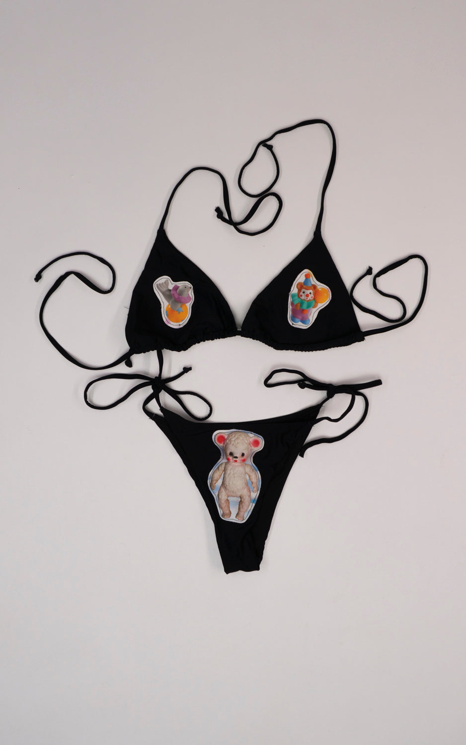 Bikini with hand sewn textile patches.